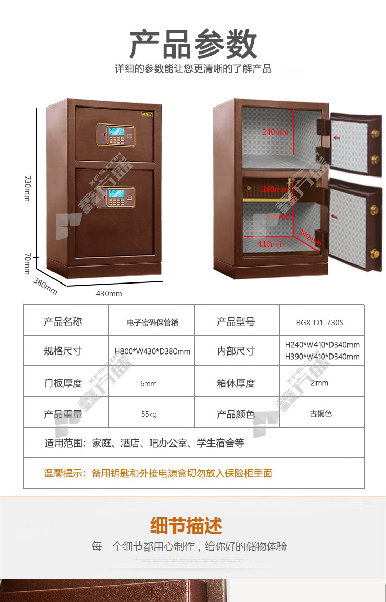 yongkanda BGX-D1-730S electronic password safe H800*W430*D380mm bronze no specification