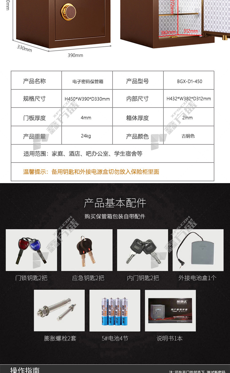 yongkanda BGX-D1-450 electronic password safe H450*W390*D330mm bronze no specification