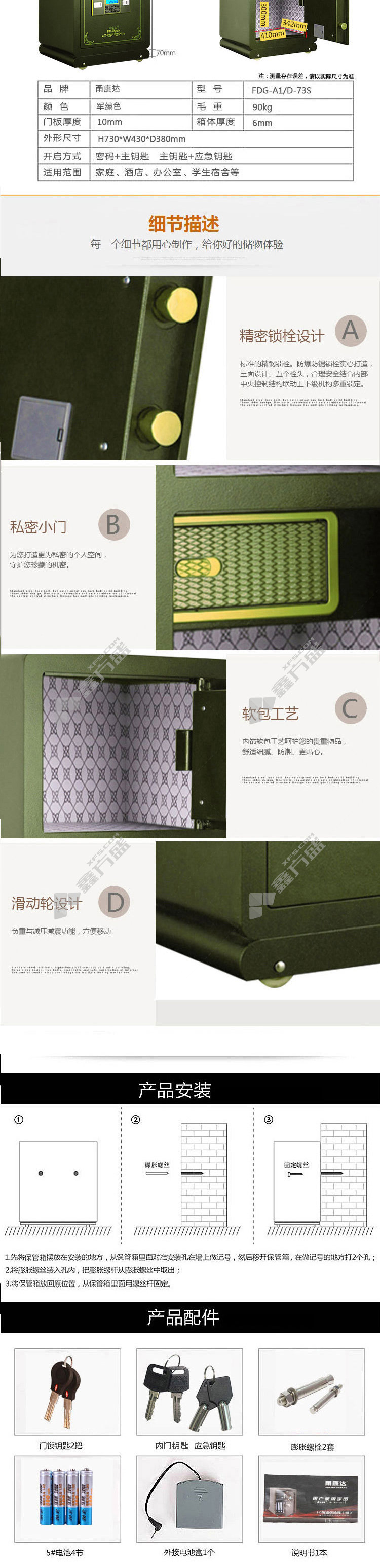 yongkanda FDG-A1/D-73S customized cabinet electronic password safe H800*W430*D380mm military green no specifications