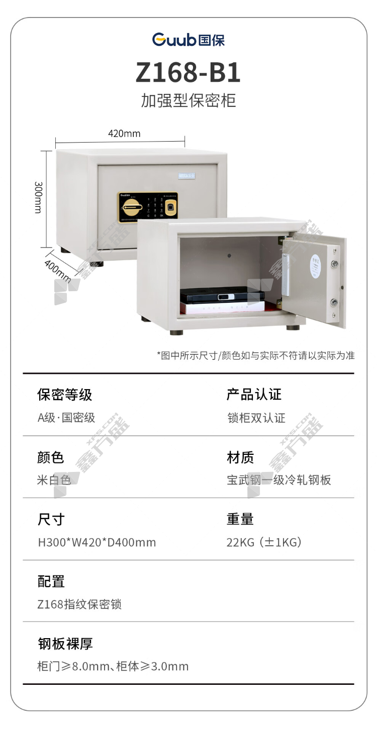 national security Z168-B1 A national secret-level fingerprint safe Z168-B1 H300*W420*D400mm off-white no specifications