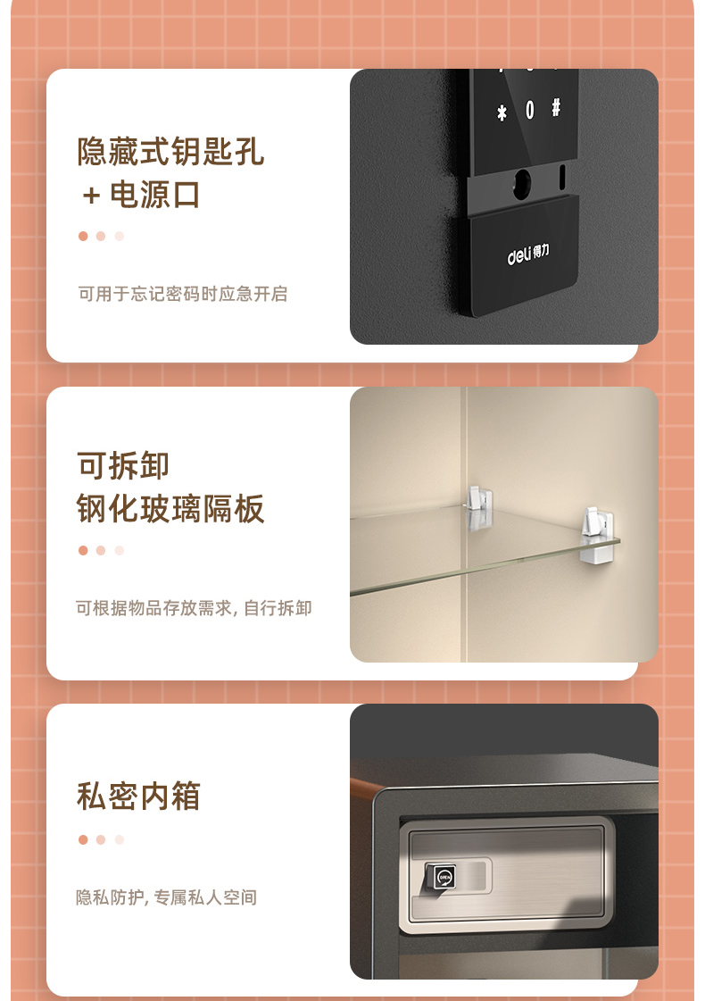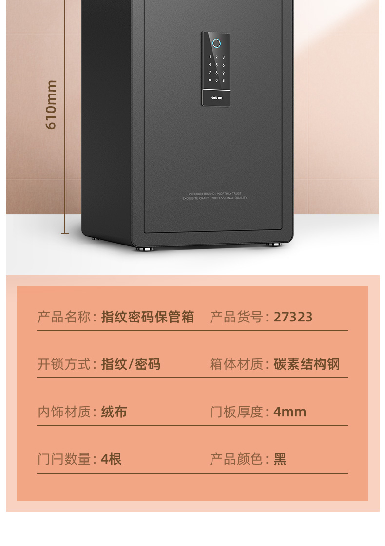 deli (deli)safe height 60 cm semiconductor fingerprint +password double anti-theft automatic opening safe safe deposit box black no specifications