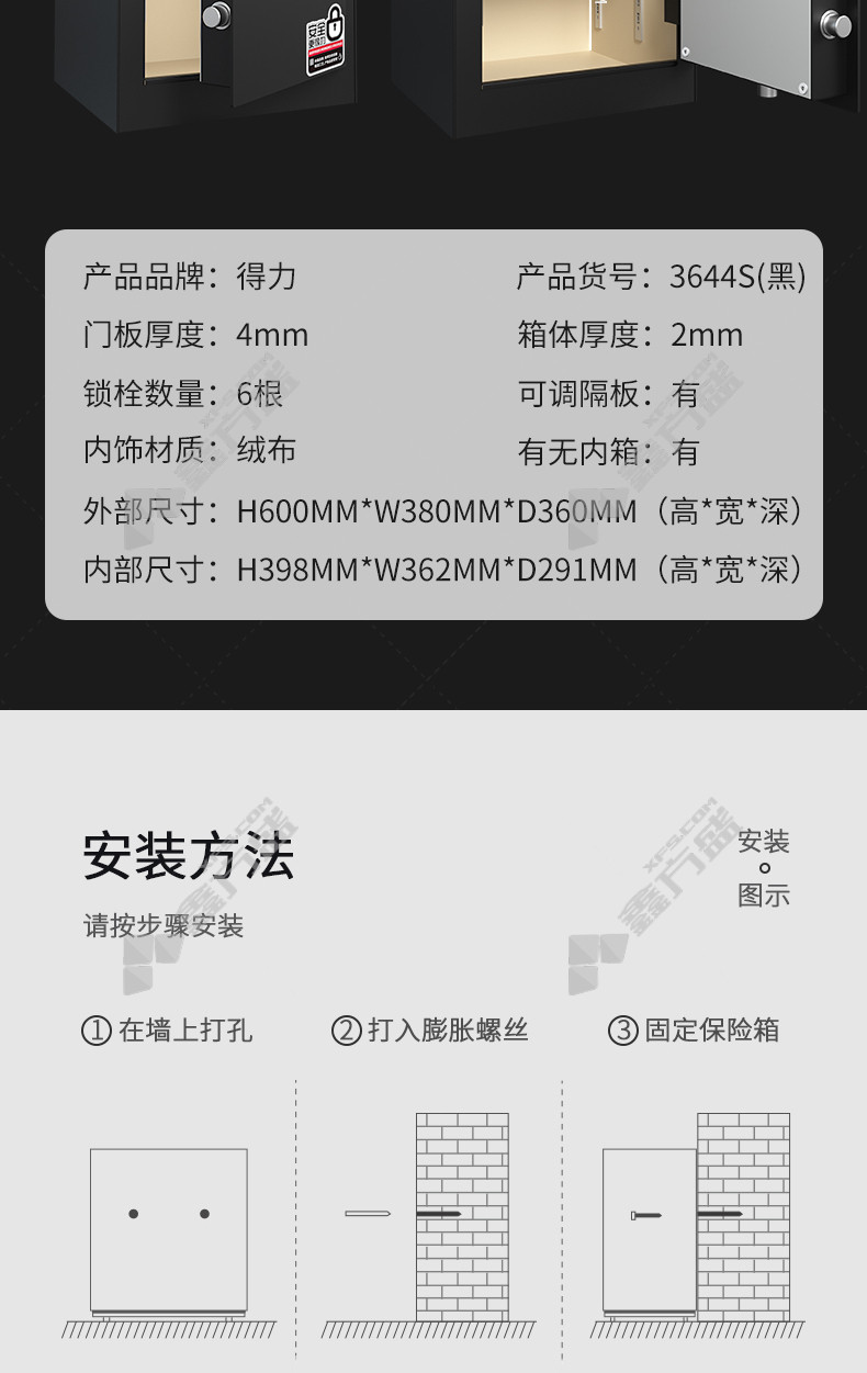 deli (deli) 3644S electronic password safe H600(black )(tower ) - no specifications