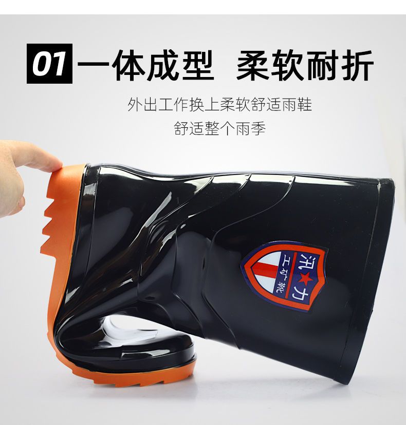 waterproof cowhide bottom rain boots men's rubber shoes wear-resistant high-top rain boots mid-top water shoes non-slip labor protection car wash water boots construction site xunli high-top black [velvet-free] +38