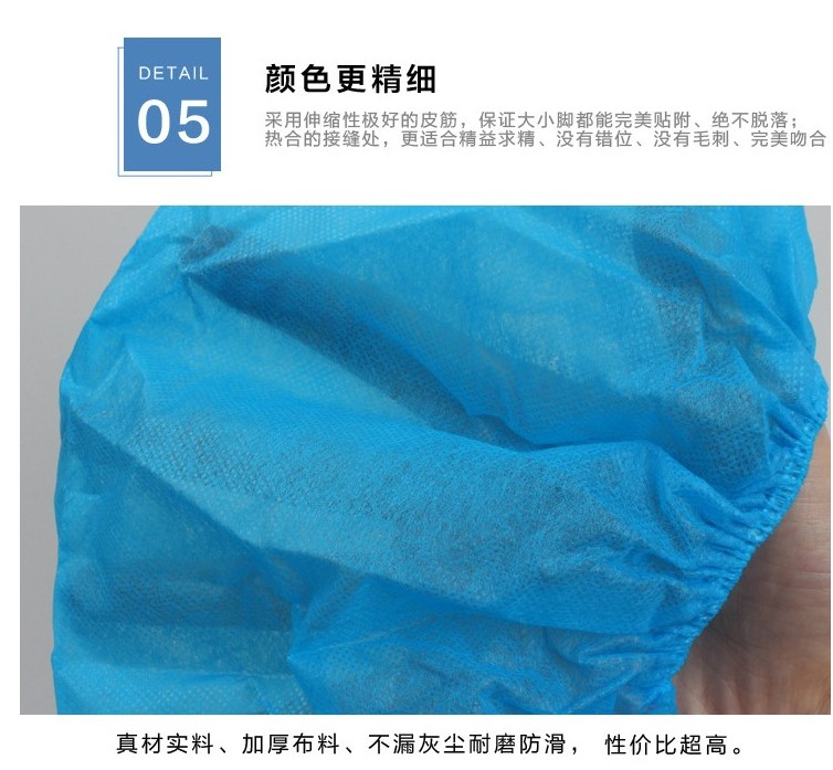 原来买过塑料的鞋套,这次买的无纺布的,这款在室内用比较好,透气、不滑,质量不错