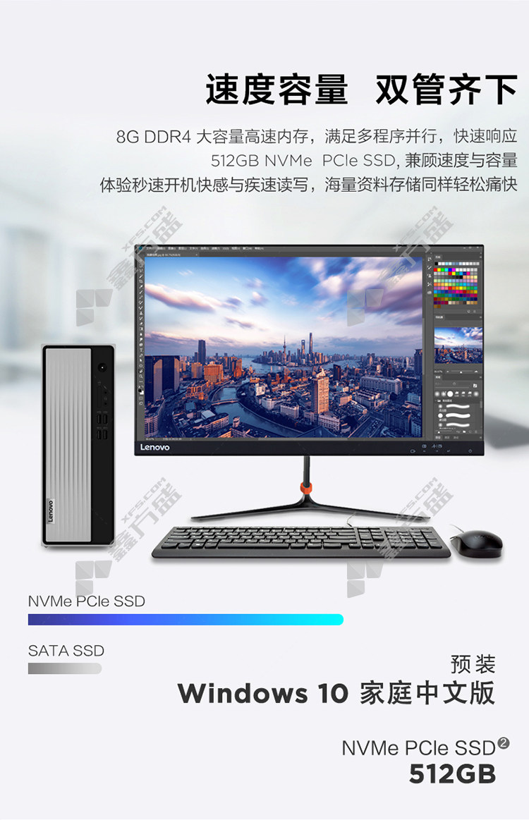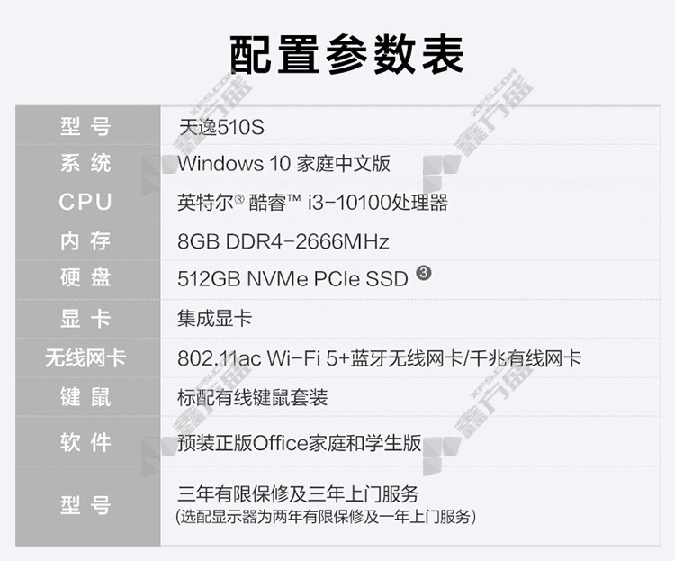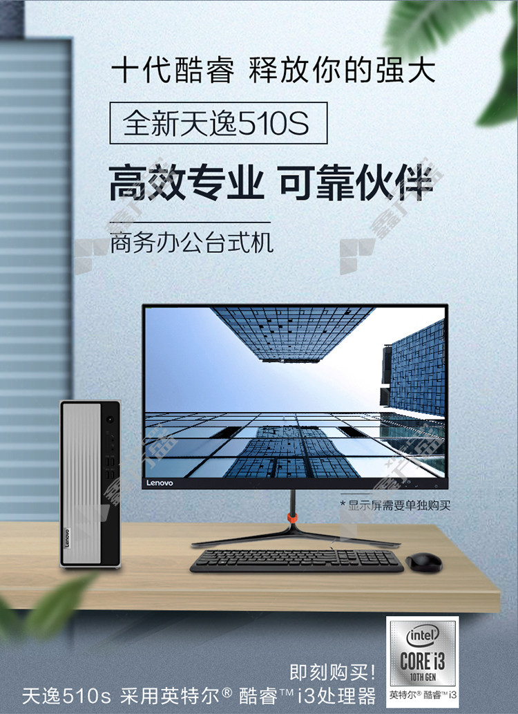 lenovo tianyi 510 S computer host +monitor 21.45 inches core i3-10100 8G 1T no specifications