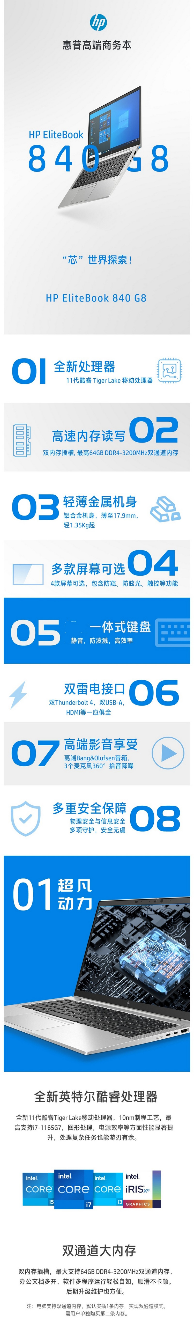 hp 840 G8 laptop i5-1135G7/intel ® sharp torch ™ Xe graphics card /8G/512G solid state silver i5-1135G7/intel ® sharp torch ™ Xe graphics card /8G/512G solid state