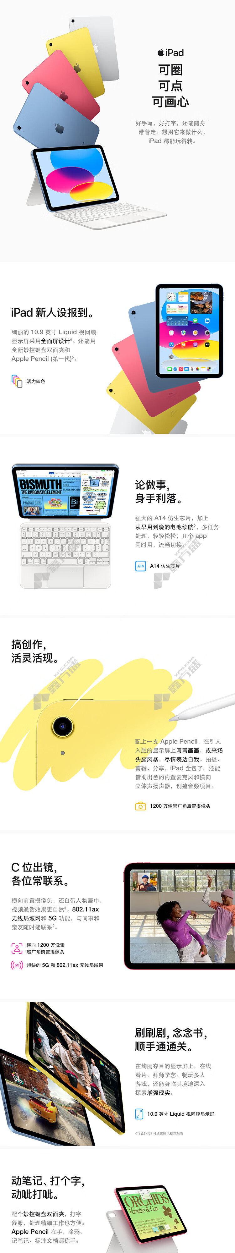 Apple iPad( 10th generation) 10.9-inch tablet 2022 new honeycomb version 256GB Cellular version /A14 chip /1200megapixel MQ763CH/A) no specifications