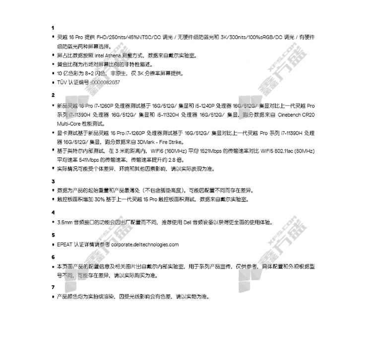 dell ( DELL) laptop inspiron 16 Pro 16 inch thin and light notebook 250 nit no specifications