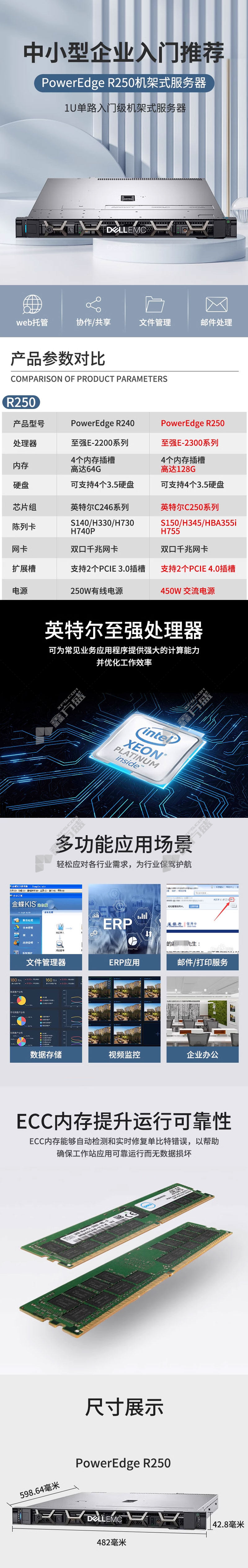 dell server hosting R250 E-2314/4core 8 threads /2disk 16 G memory /2*1T hard drive gray no specifications