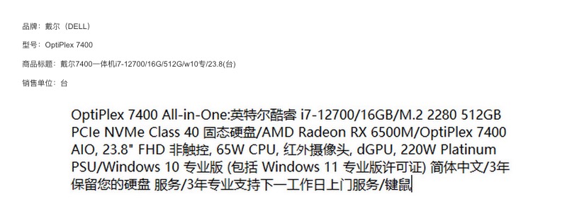 dell OptiPlex 7400 all-in-one machine i5-12500/8GB/512G M.2 NVMe SSD/AMD Radeon RX 6500M//Windows 10 professional version /3yearly hard drive retention /3years of professional door-to-door visits /keyboard and mouse /23.8 black i5-12500/8GB/512G M.2 NVMe SSD/AMD Radeon RX 6500M//Windows 10 professional version /3yearly hard drive retention /3years of professional door-to-door visits /keyboard and mouse /23.8