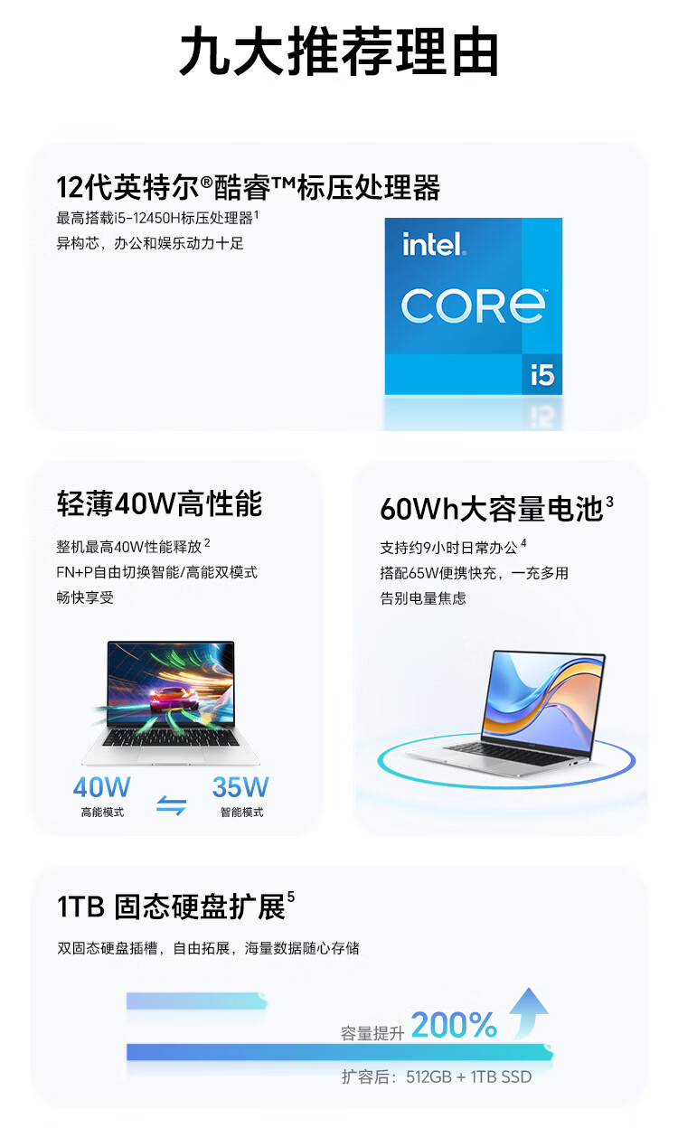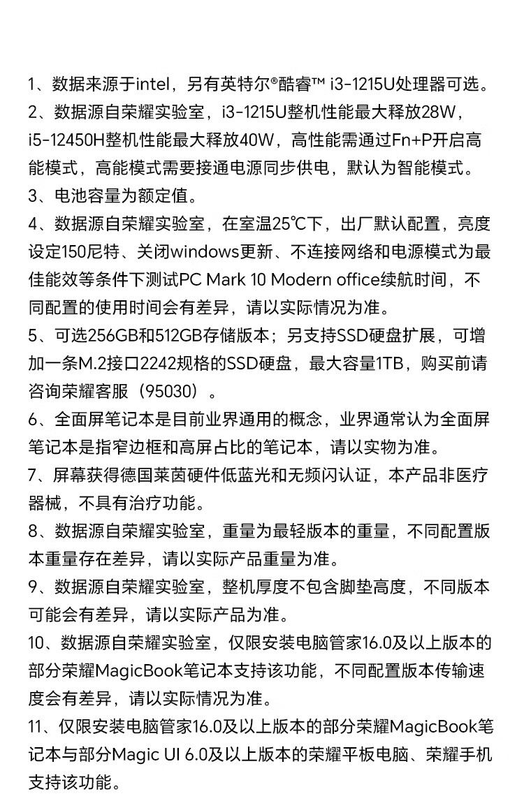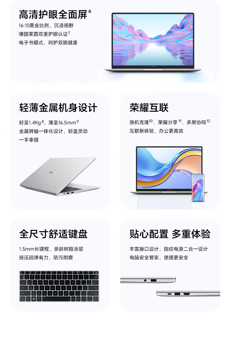 honor laptop 16 G 512G 100%sRGB high color gamut, thin, light and large battery mobile phone interconnection model FRI-F56 MagicBook X 14 2023 12 generation core standard pressure i5 no specifications