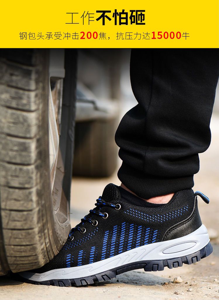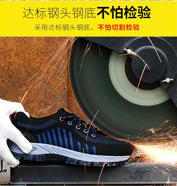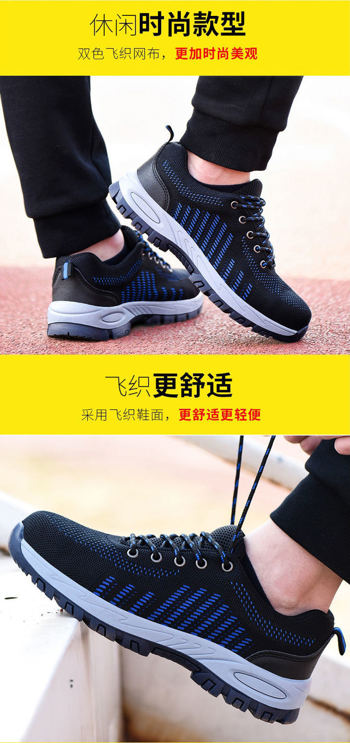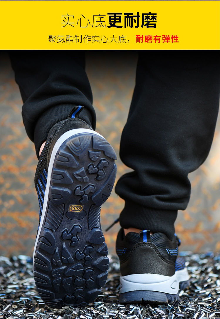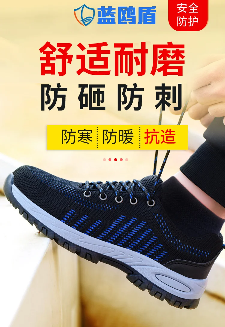 men's winter labor protection shoes with velvet steel toe caps, anti-smash, anti-puncture, deodorant, insulation shoes, wear-resistant new construction site work shoes [four seasons] solid bottom wear-resistant blue +36code