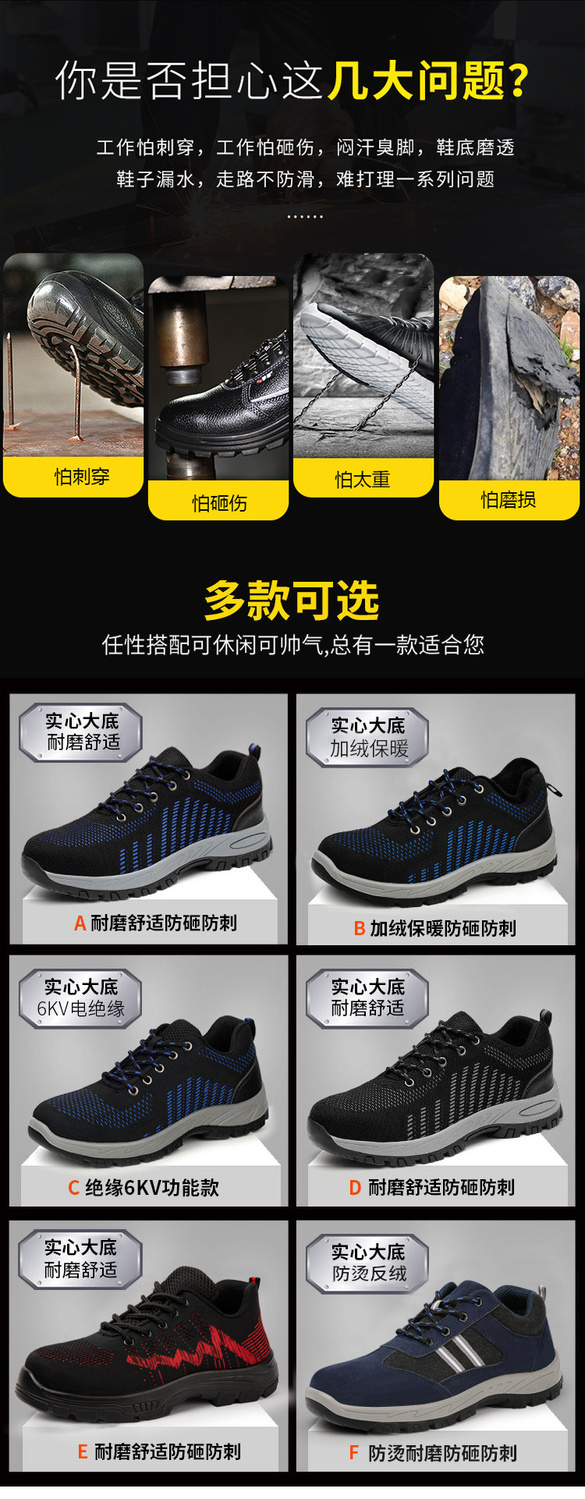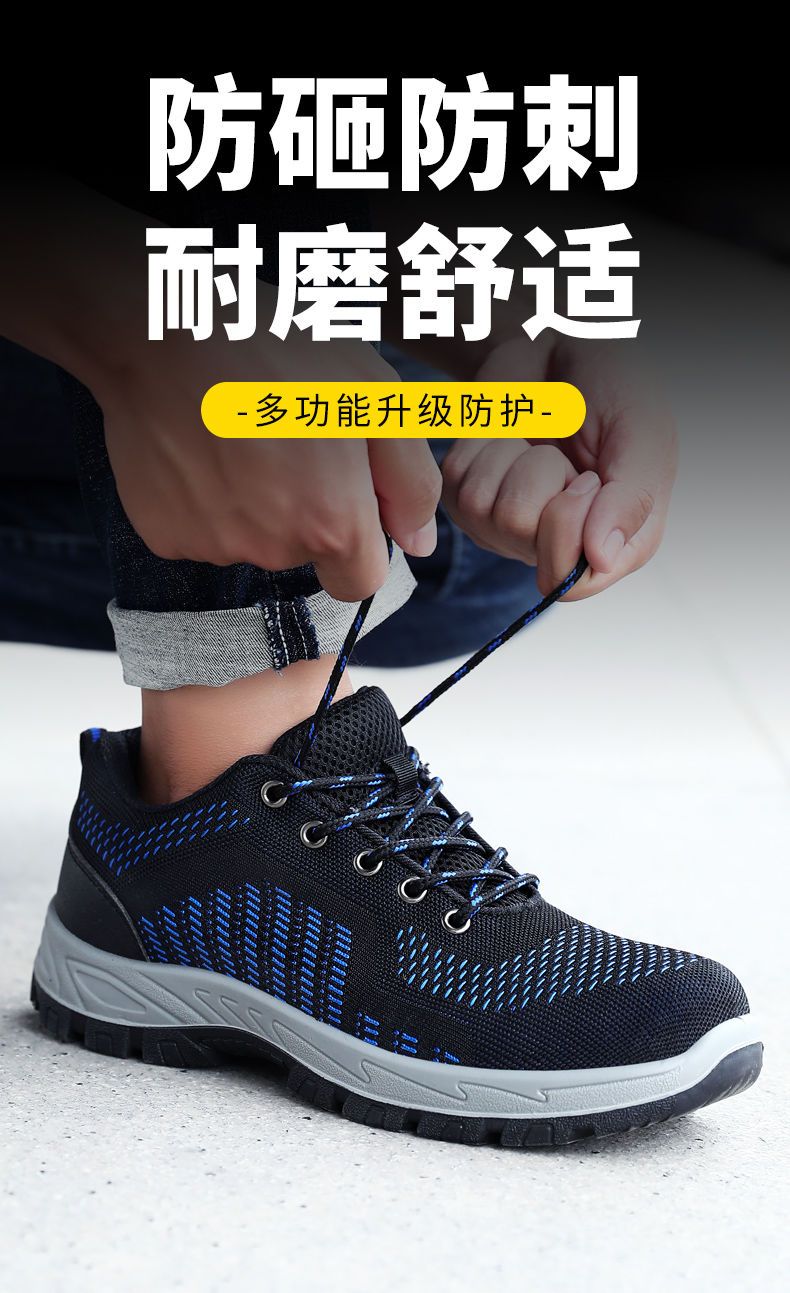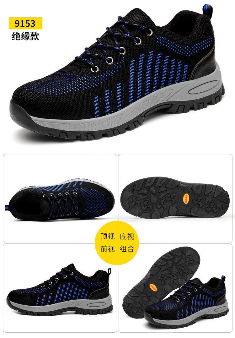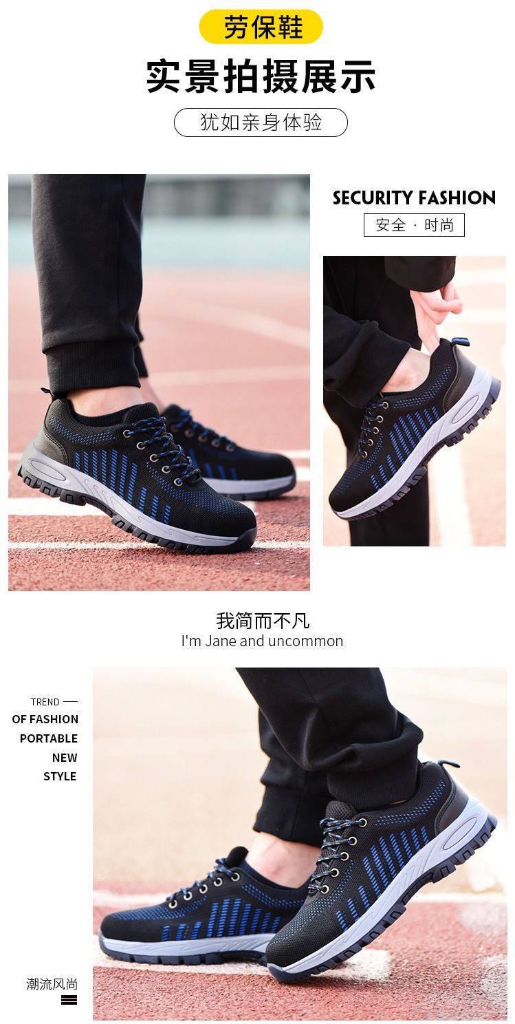 men's winter labor protection shoes with velvet steel toe caps, anti-smash, anti-puncture, deodorant, insulation shoes, wear-resistant new construction site work shoes [four seasons] solid bottom wear-resistant blue +36code