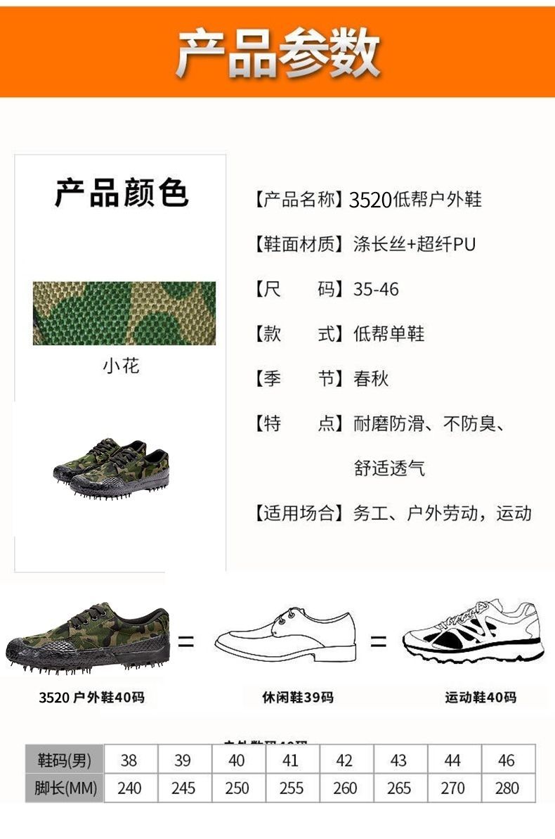 3520breathable liberation shoes men's construction site wear-resistant labor protection shoes migrant workers shoes camouflage shoes rubber shoes work shoes low-top shoes 3520 genuine low-top small flowers +thickened double bottom +3