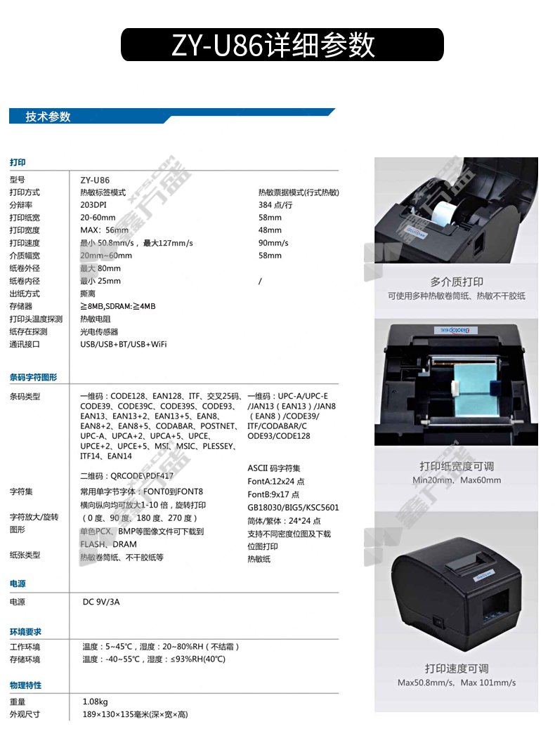 standard extension ZY-U86 thermal two-inch label barcode machine ZY-U86 no specifications