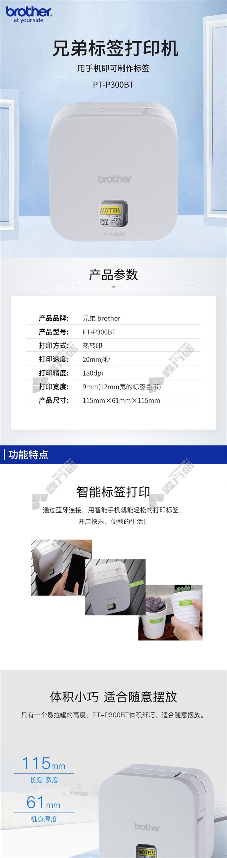 brother label printer PT-P300BT 118*53*46mm PT-P300BT white no specification