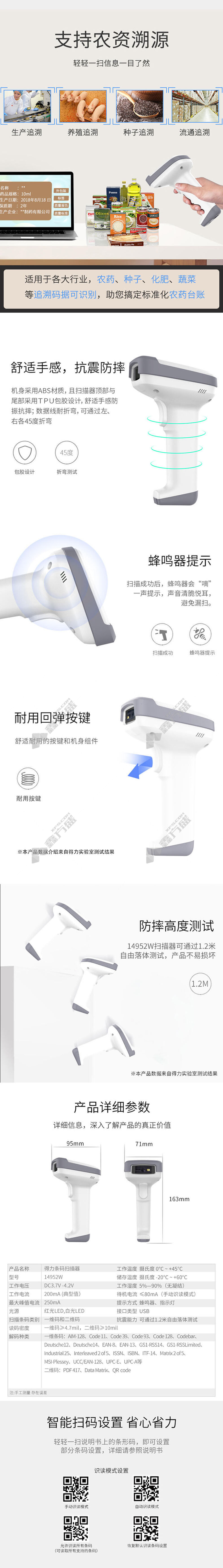 deli deli 14952W barcode scanner 14952 W black 14952W/ black