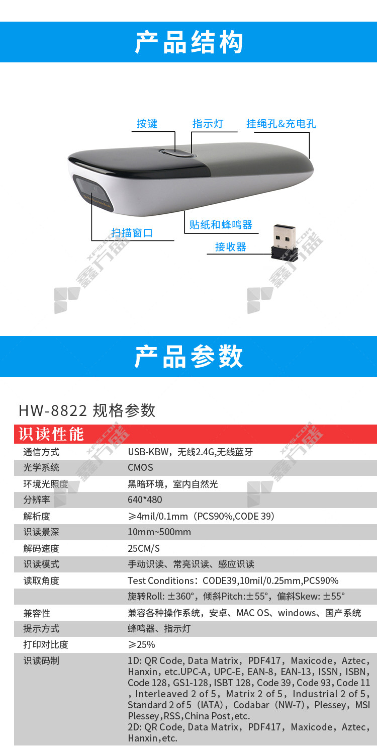 hanvon 8822 barcode scanner HW-8822 2d portable no specification