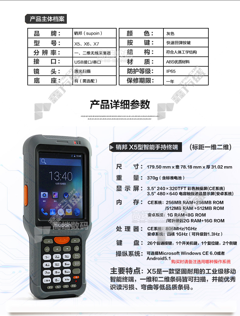 sell the country X7 barcode data collector PDA X7 two-dimensional CE system gray without specifications