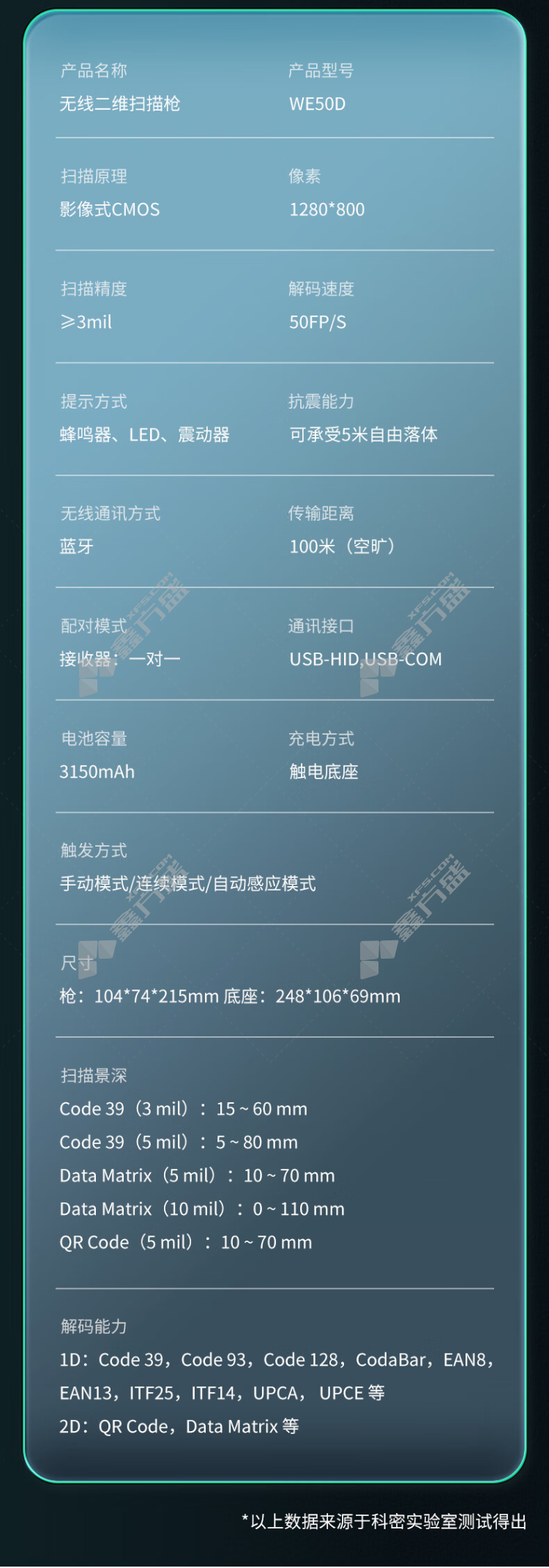 comet WE50D scanner with charging stand WE50D wireless one-two-dimensional code has no specifications