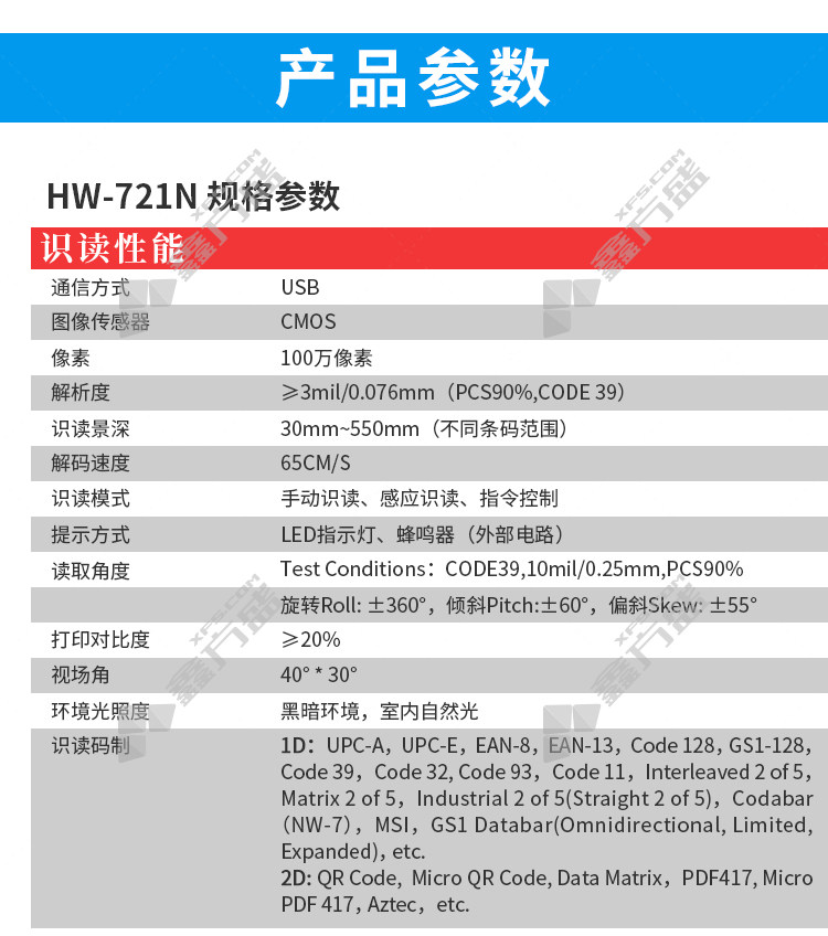 king of han 721 N barcode scanner HW-721N 2d wired no specification