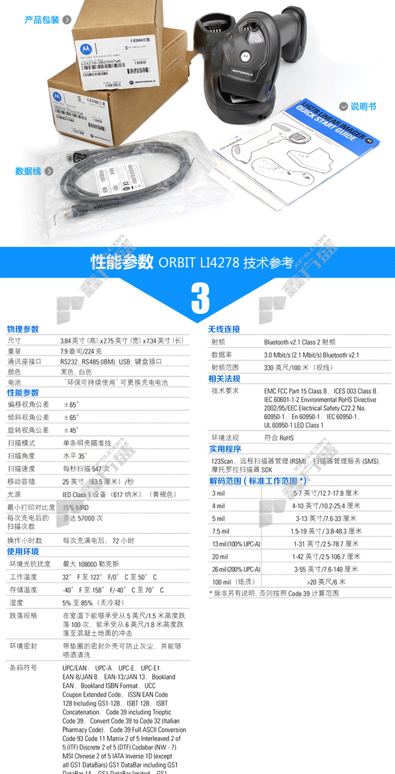 zebra ZEBRA scanner gun industrial grade LI4278-TRBU0100ZAC LI4278-TRBU0100ZAC one-dimensional wireless industrial grade without specifications