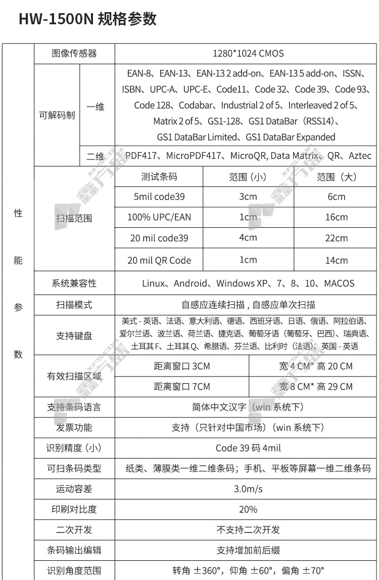 king of han HW-1500N barcode scanner HW-1500N 2d payment platform 1 million 120 frames without specifications