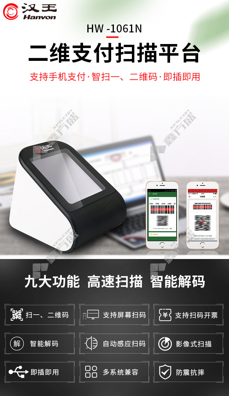 king of han 1061 N barcode scanner HW-1061N 2d wired payment box no specifications