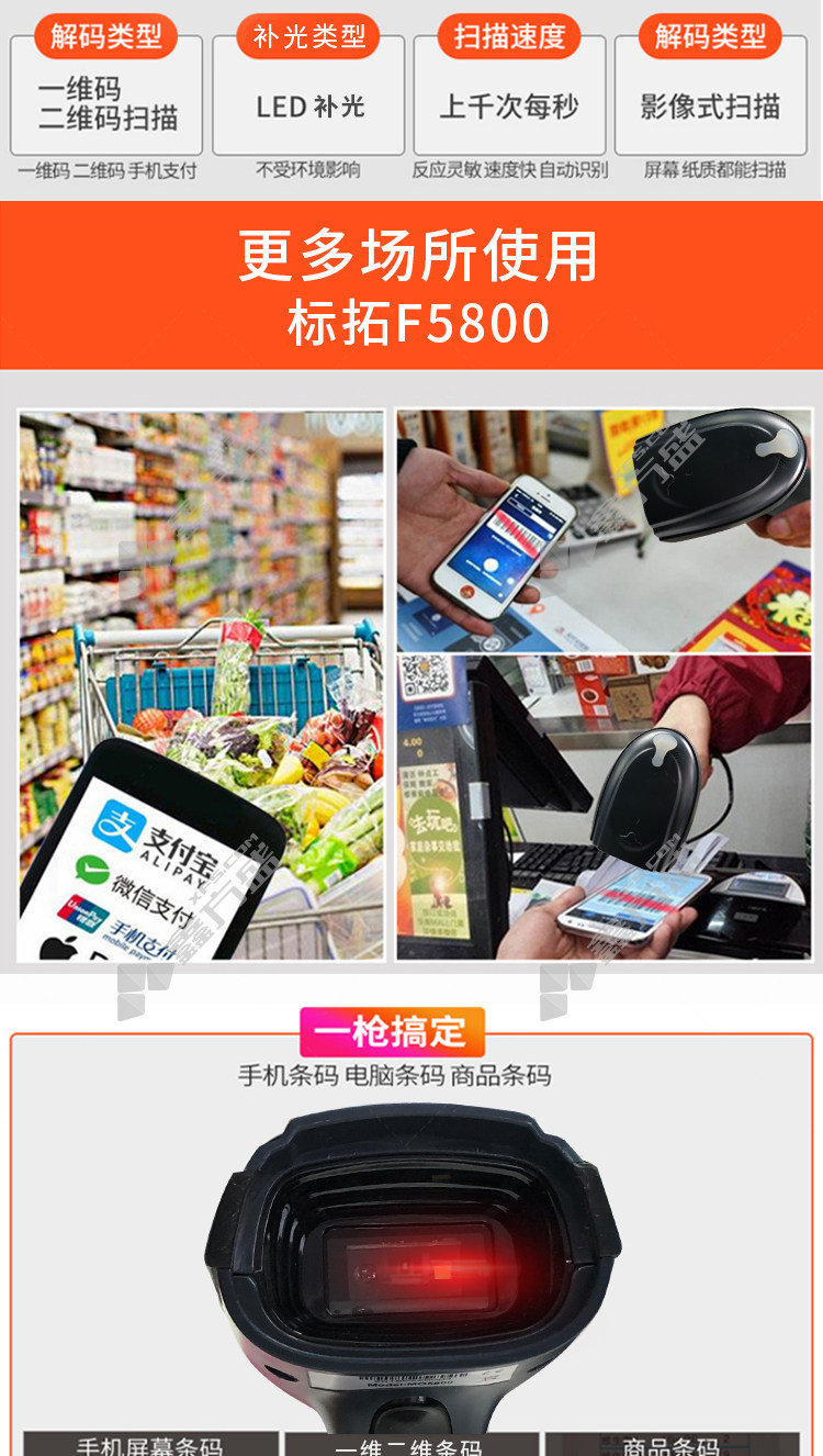 standard extension F5800 qr code barcode cashier wechat payment scanner F5800 no specifications