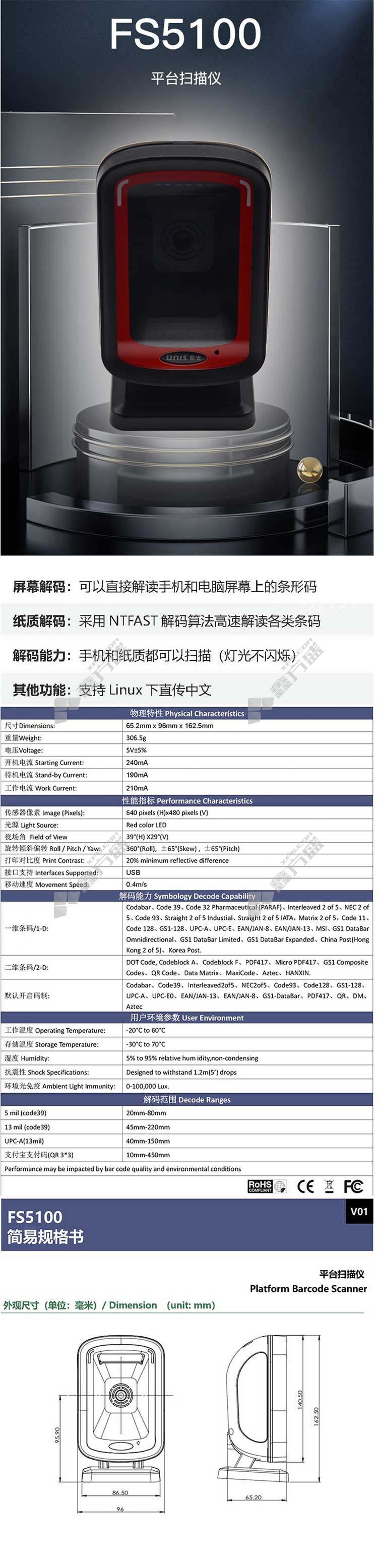 purple light FS5100 1d 2d barcode scanner FS5100 no specifications
