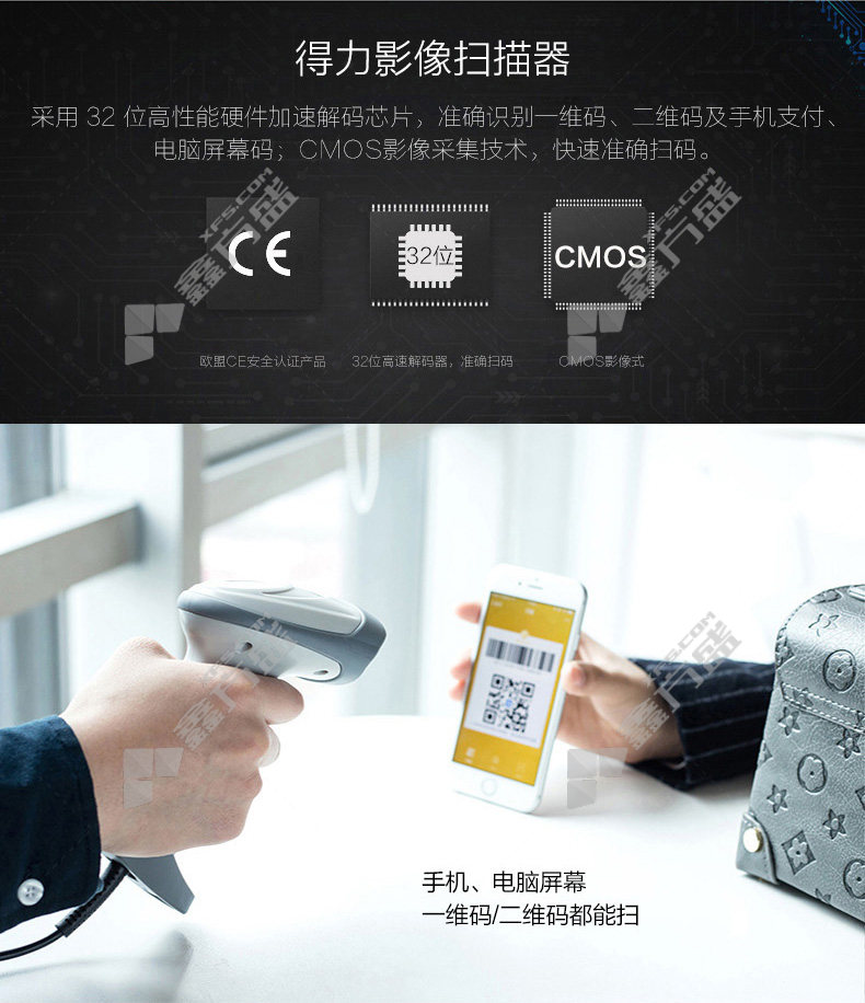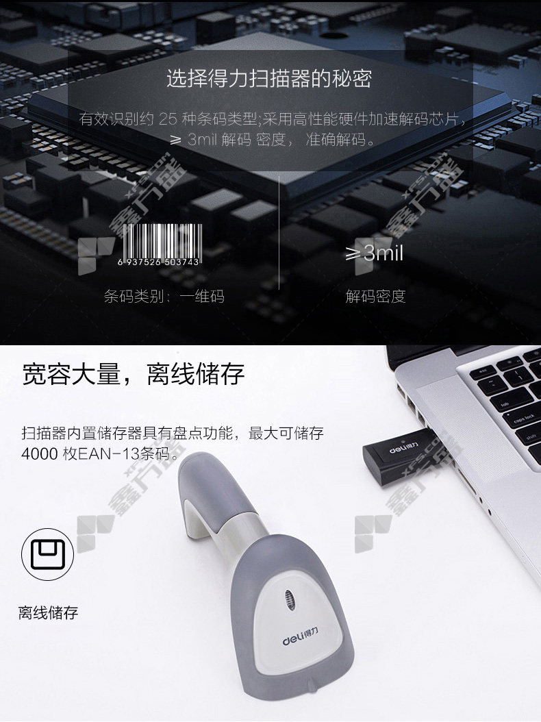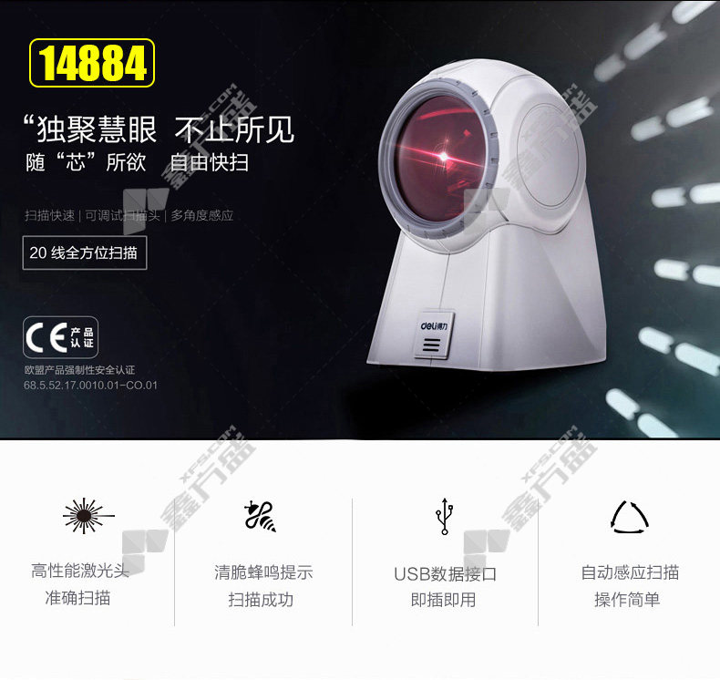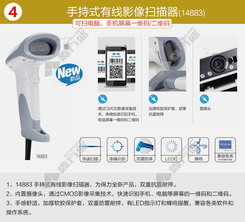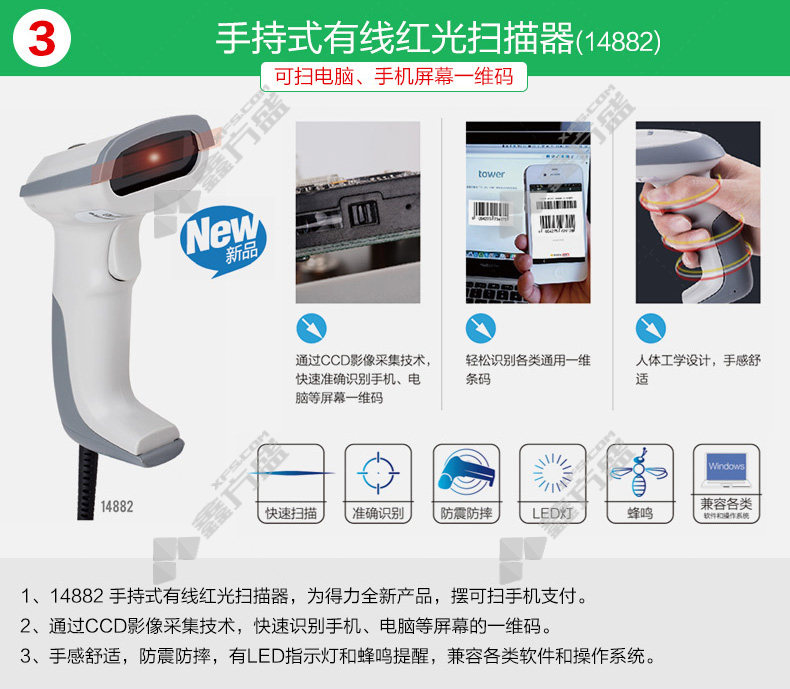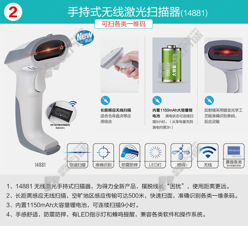 deli barcode scanner 12d code scanner 14884 black no specifications