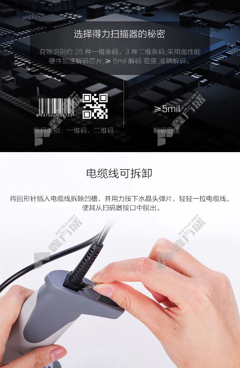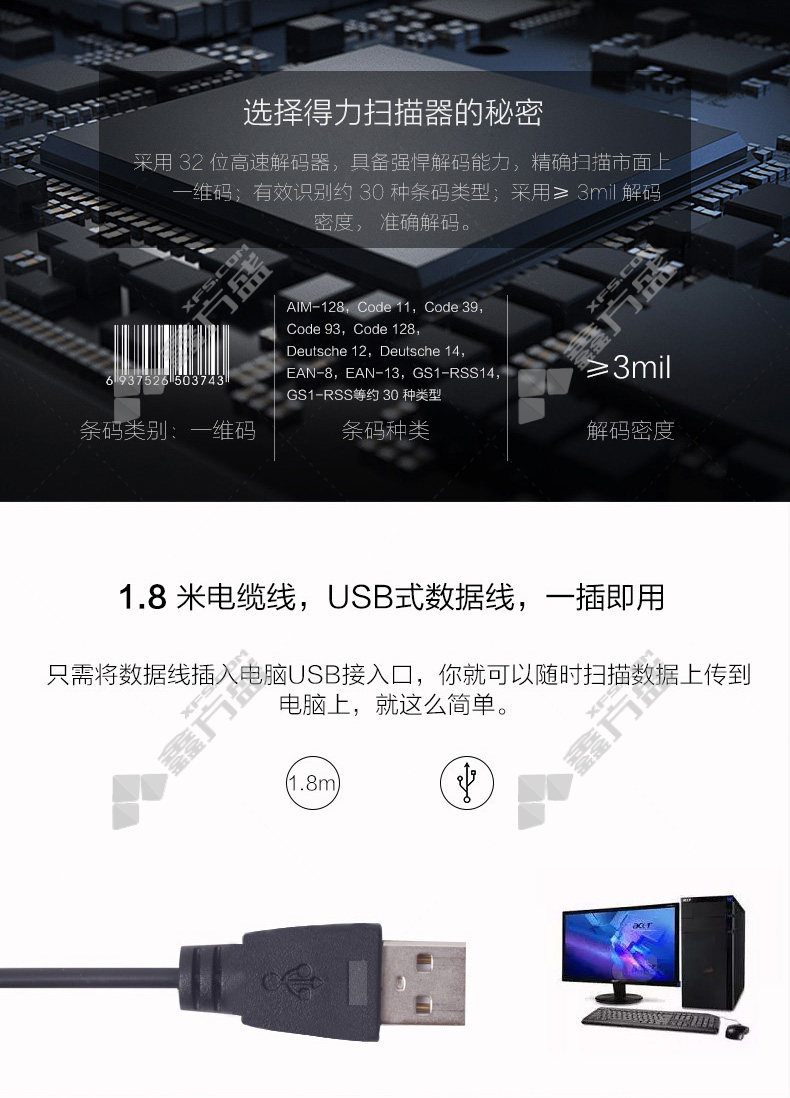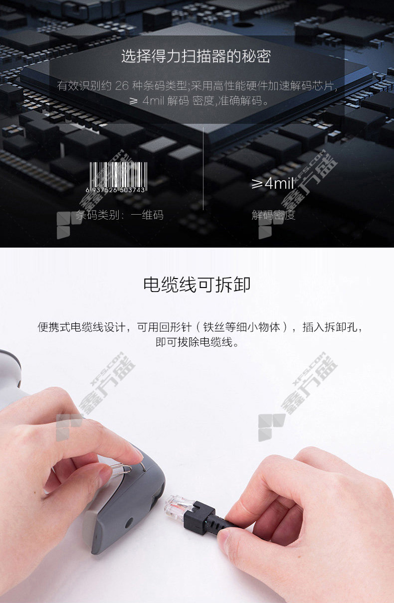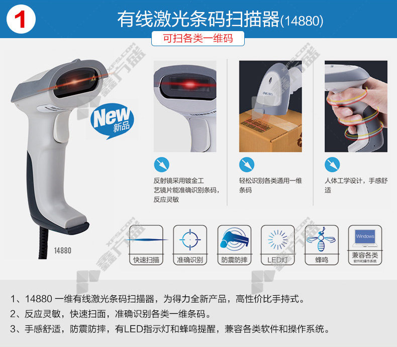 deli barcode scanner 12d code scanner 14884 black no specifications