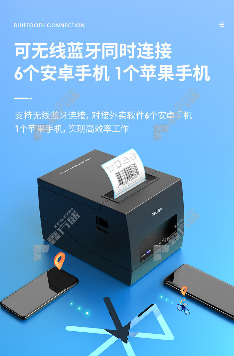 deli bluetooth mobile APP thermal printer electronic form qr code barcode sticker printer DL-886BL black no specification