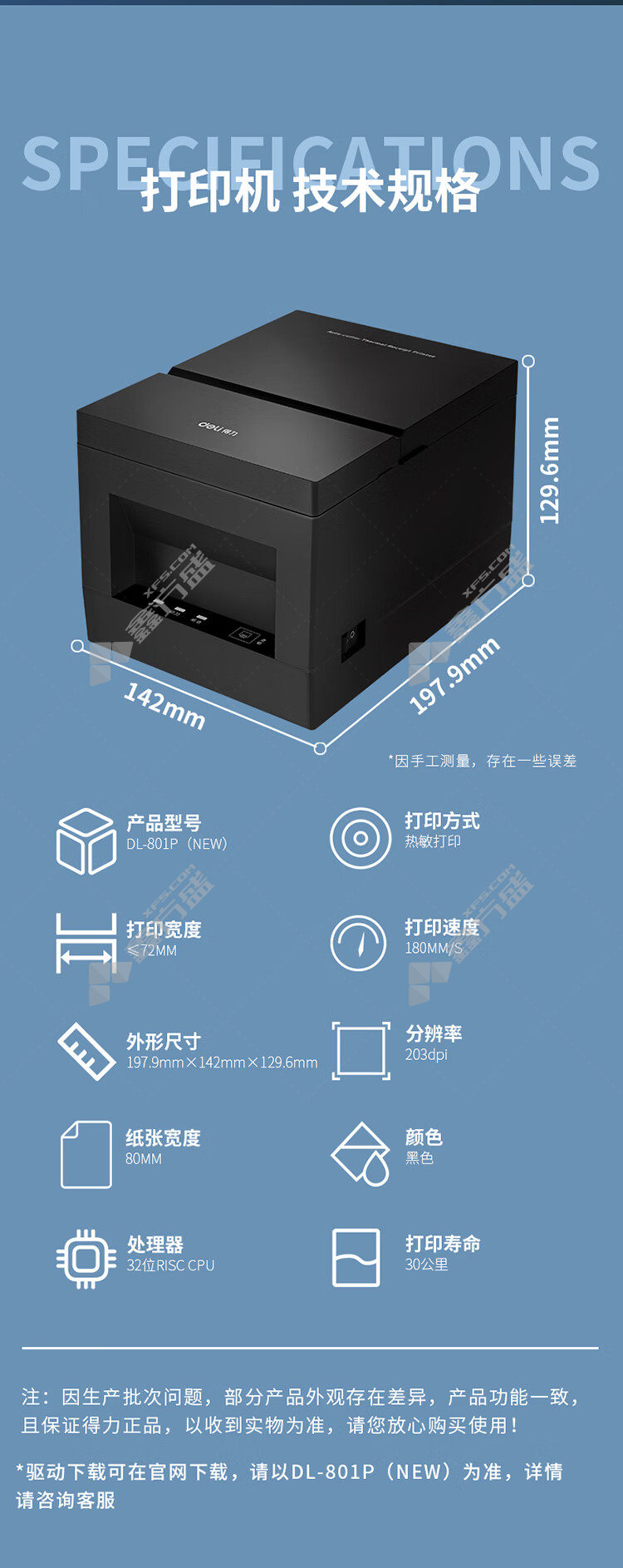 deli 3-inch thermal receipt printer receipt printer DL-801P black no specification