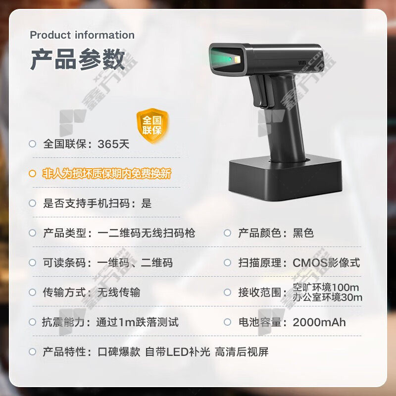 deli 14970 scanner wireless code scanning gun. no specifications for 2d barcodes