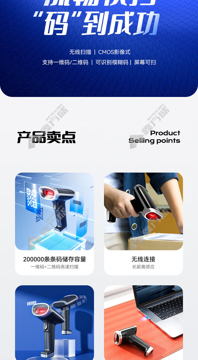 deli AA304 scanner wireless code scanning gun 2d barcode no specifications
