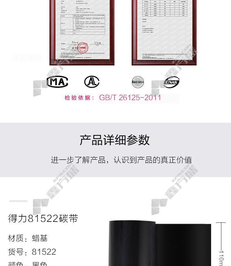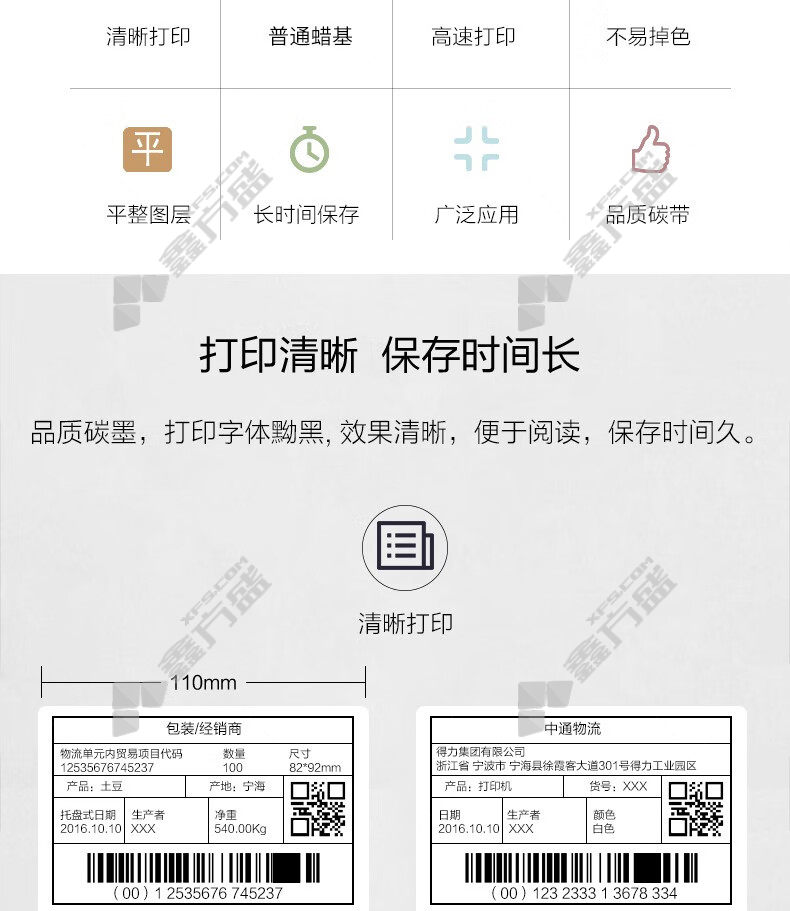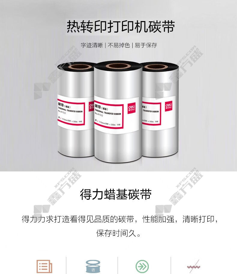 deli thermal transfer barcode printer label machine printing ribbon wax-based mixed-base resin-based blackening single roll 81552 110 mm*300m no specifications