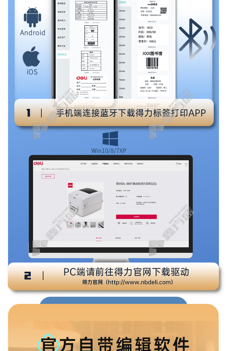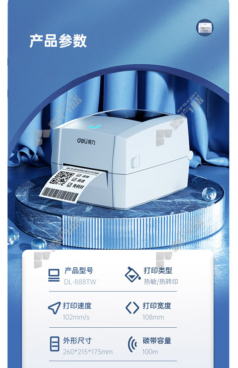 deli 108 MM thermal transfer label printer mobile phone bluetooth fixed asset express delivery form self-adhesive DL-888TW no specifications