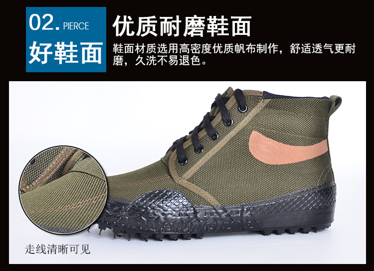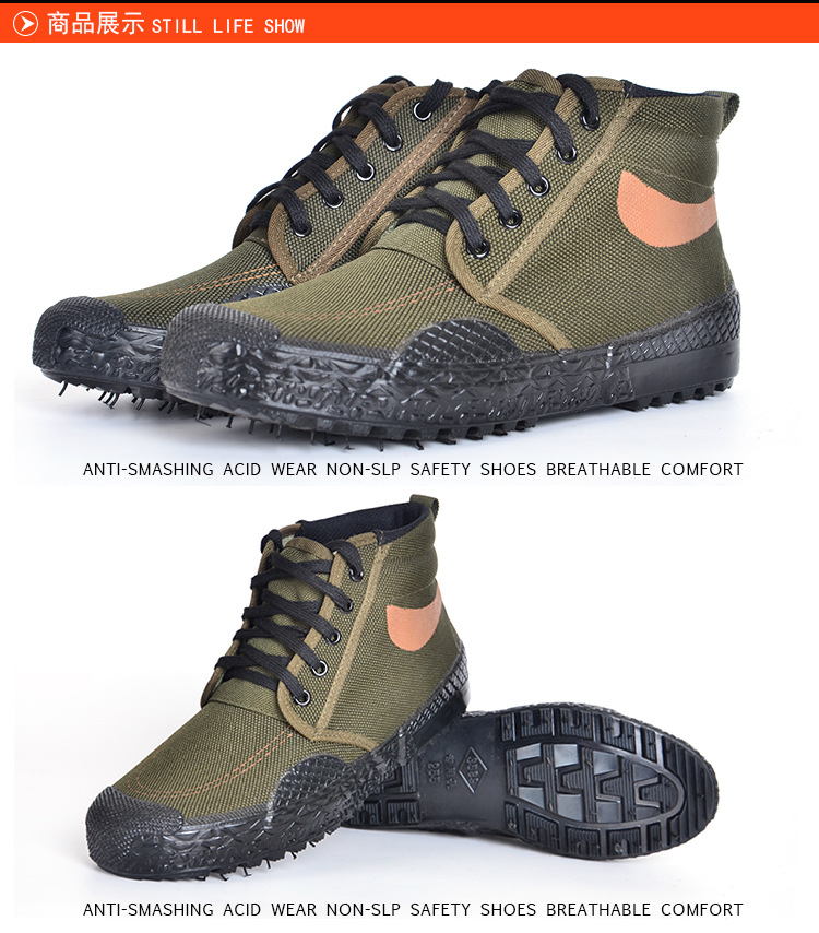 genuine 3589 rubber hiking shoes high top canvas shoes work shoes labor shoes men's construction site farmland work labor protection shoes high top green +35