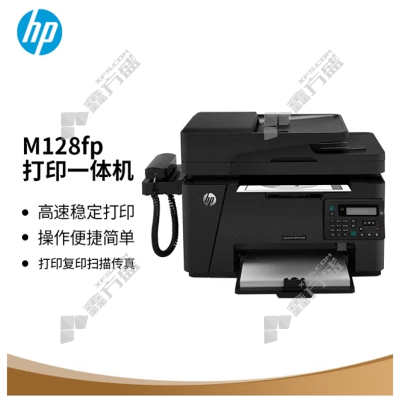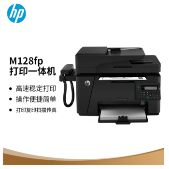 hp printer M128FP fax with handle black and white printing, copying, scanning, faxing support document feeder no specifications