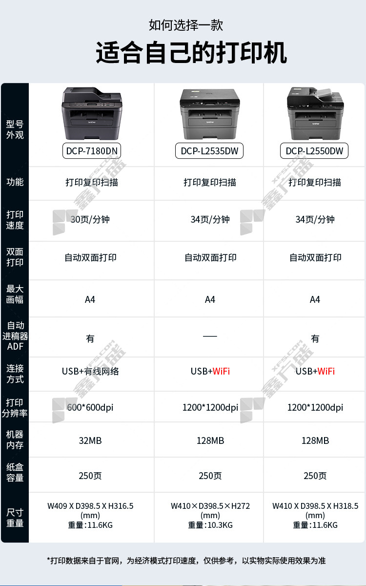 brother DCP-7180DN black and white laser double-sided commercial office printer table without specifications