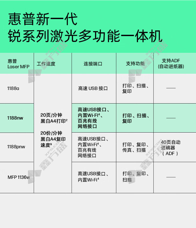 hp ( HP)1188nw rui series laser multifunctional machine three-in-one wireless version 1188 nw no specifications
