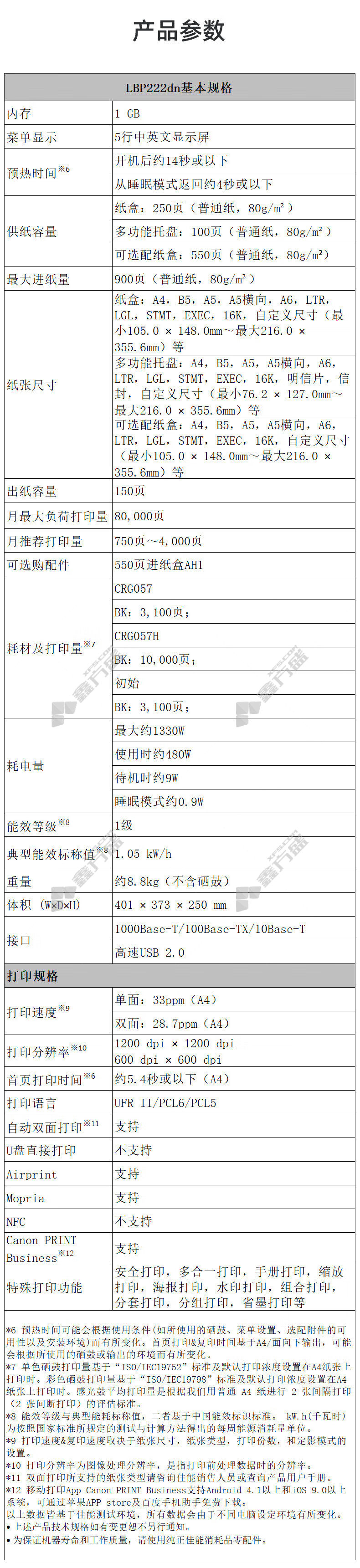 canon LBP222DN black and white laser duplex printer A4 no specifications
