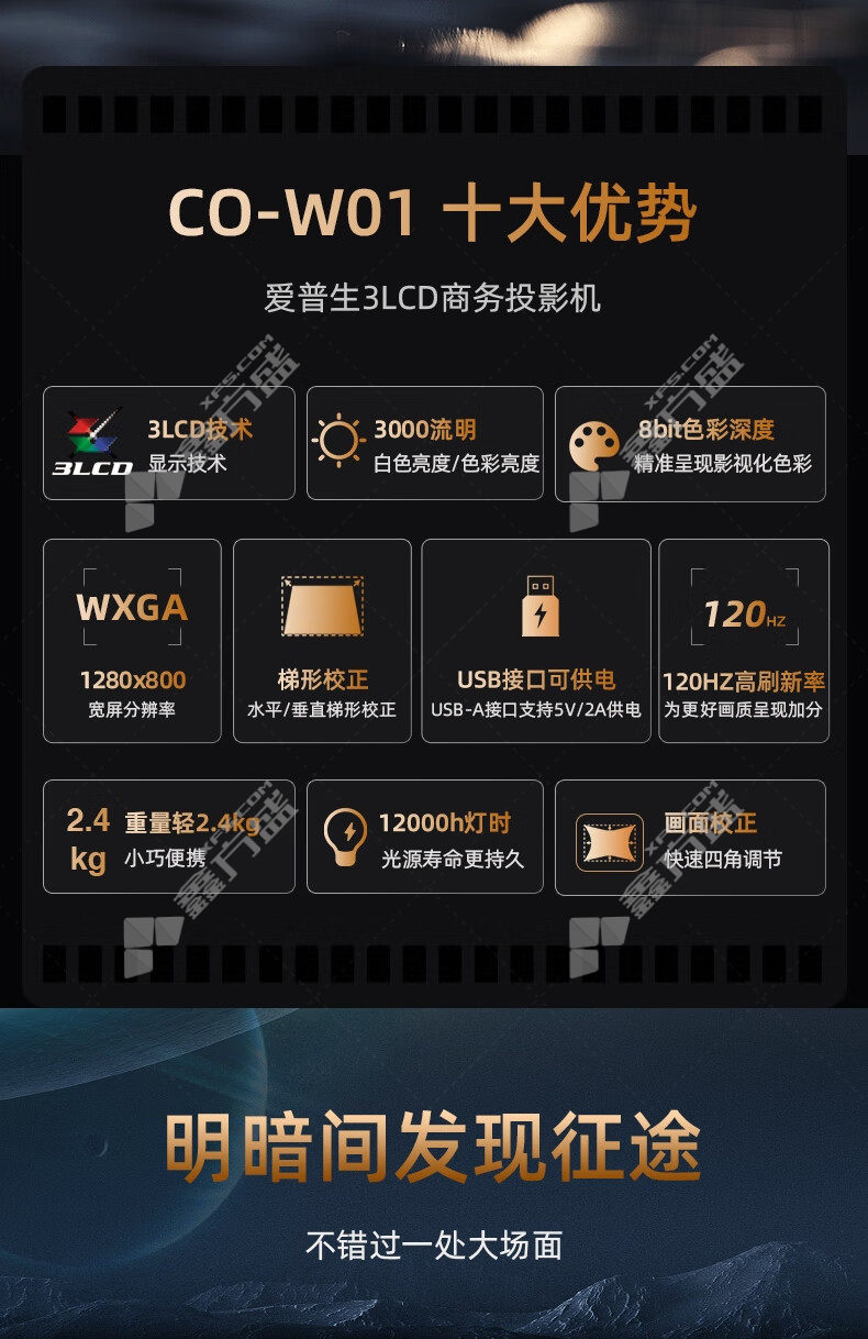 epson CO-W01 white projector CO-W01 1280*800p standard white, no specifications