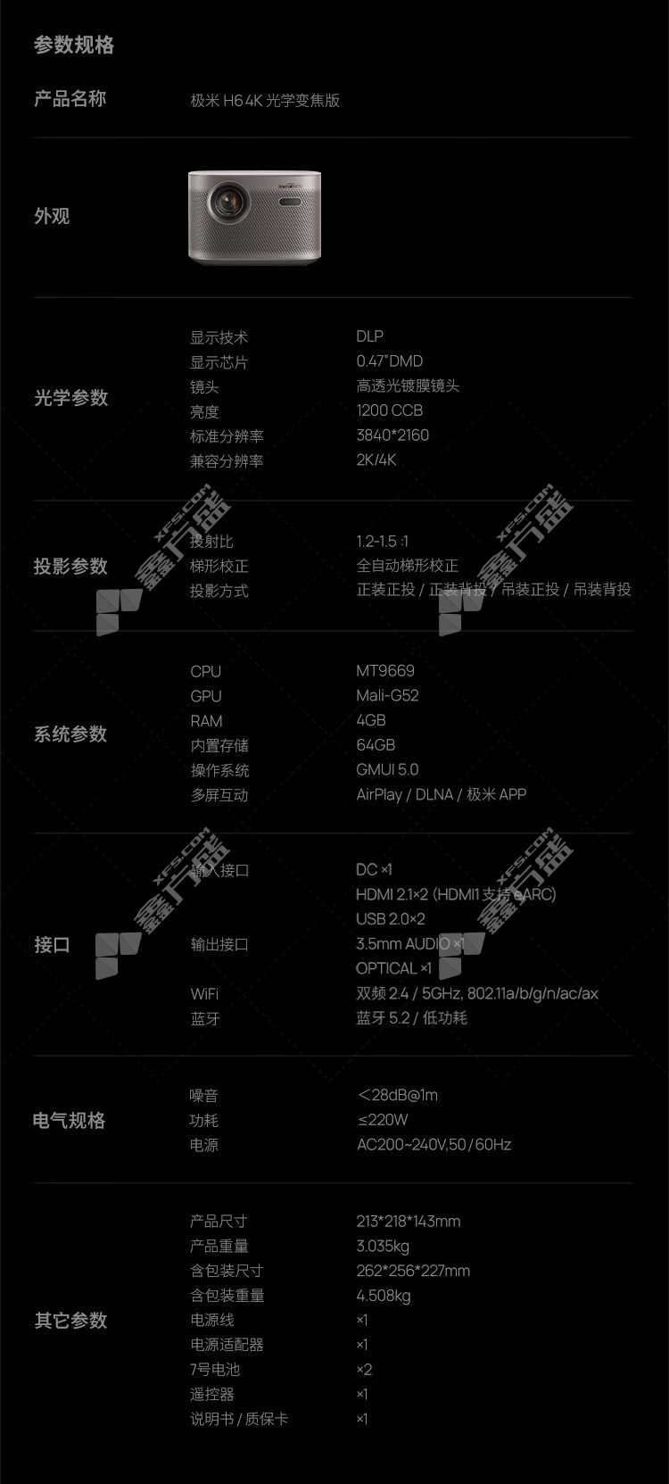 jimi H6 gray projector H6 4K standard gray no specification