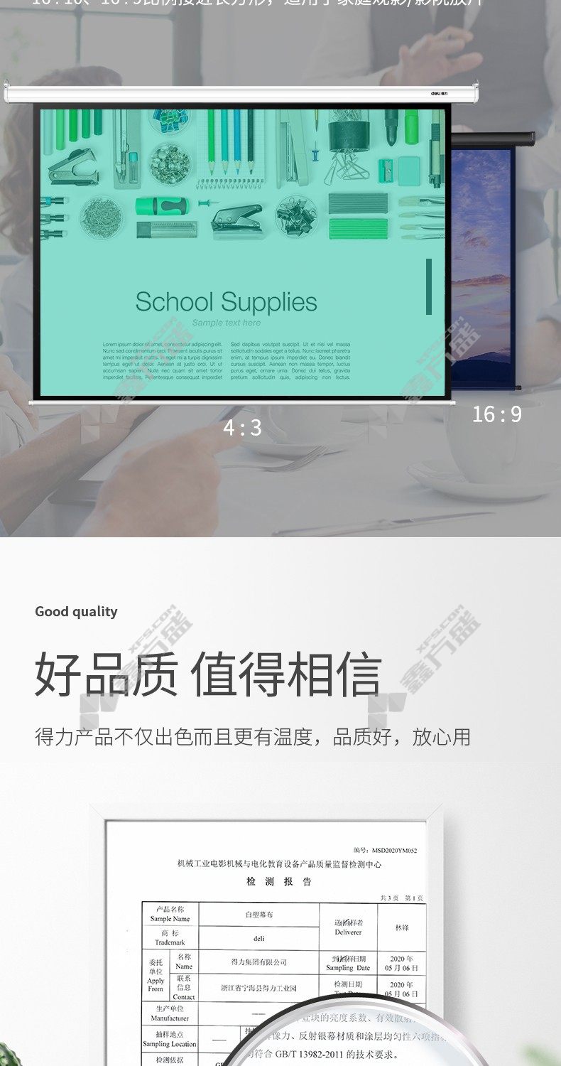 deli deli electric remote control projection screen 50440 4:3 100 inches 50440 white no specifications