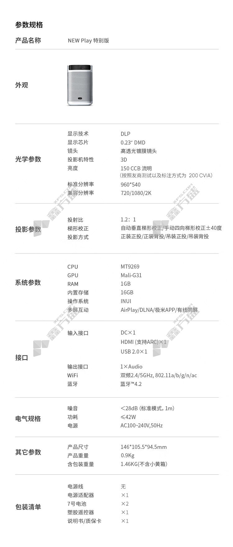 jimi new play special edition portable projector new play 960*540dpi standard gray no specification