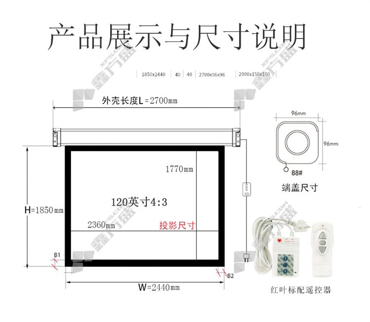 hongye electric projection screen 120 inches, 4:3 120 inches, 16:10