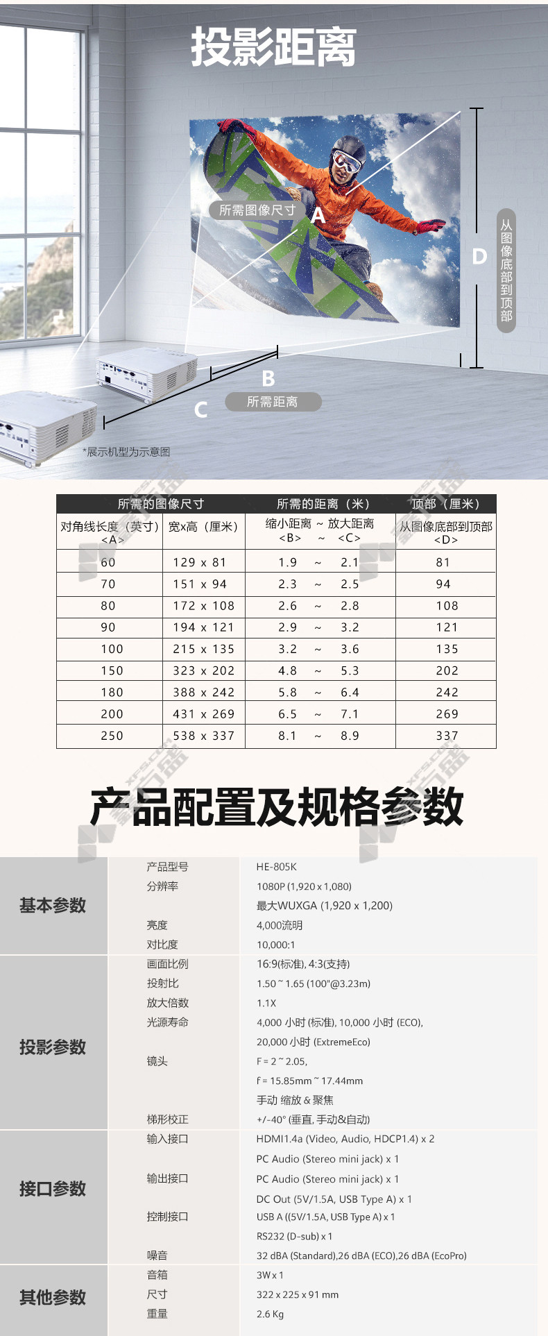 acer projector HE-805K no specifications