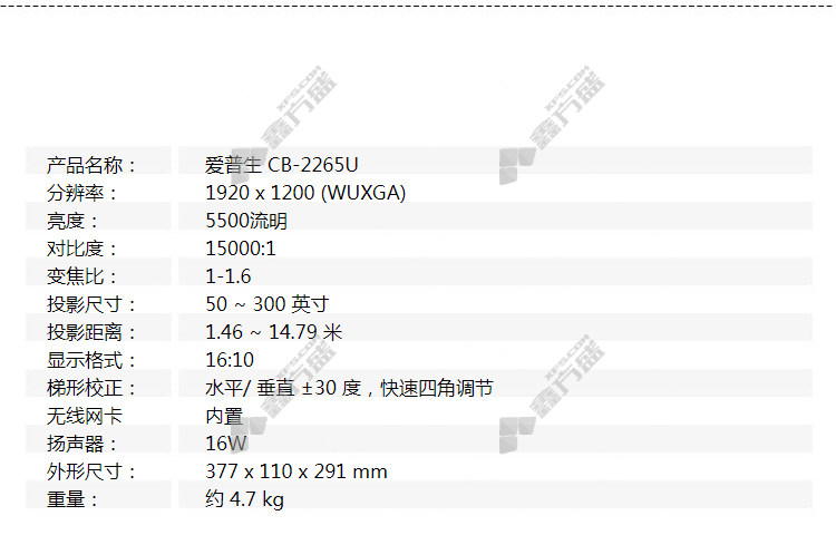 epson CB-2265U projector manufacturer standard configuration CB-2265U 1920*1200p standard white, no specifications